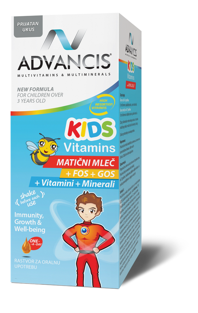 Advancis Kids Vitamins predstavlja sveobuhvatno rešenje za podršku zdravom razvoju i rastu dece uzrasta od 3 godine. Ova unikatna formula kombinuje esencijalne vitamine i minerale sa prirodnim snagom matičnog mleča i prebiotika, pružajući sveobuhvatnu podršku dečjem organizmu.