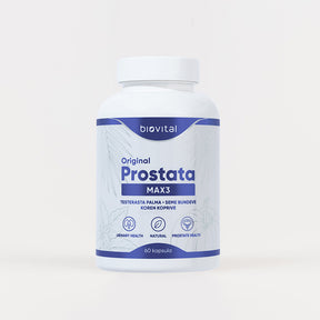 Original Prostata Max3 je dodatak ishrani namenjen muškarcima koji žele da očuvaju zdravlje prostate i prevaziđu tegobe kao što su učestalo mokrenje, slabiji protok urina i neprijatnost u predelu donjeg stomaka. Sadrži klinički ispitane biljne ekstrakte – testerastu palmu (200 mg), seme bundeve (200 mg) i koren koprive (50 mg) – koji zajednički deluju protiv upala i hormonalnog disbalansa.