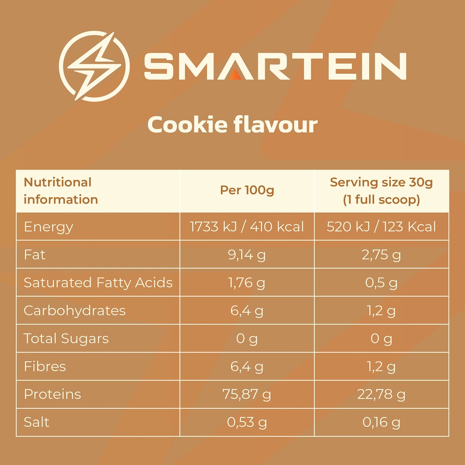 Za razliku od biljnih proteina (grašak, soja, pirinač), SMARTEIN® ima kompletan aminokiselinski profil sa svim esencijalnim i neesencijalnim aminokiselinama. Kvalitetom je jednak whey proteinu, ali je u potpunosti bez laktoze, glutena, kazeina i šećera – idealan za osobe koje traže efikasan, a lagan protein bez opterećenja za stomak.